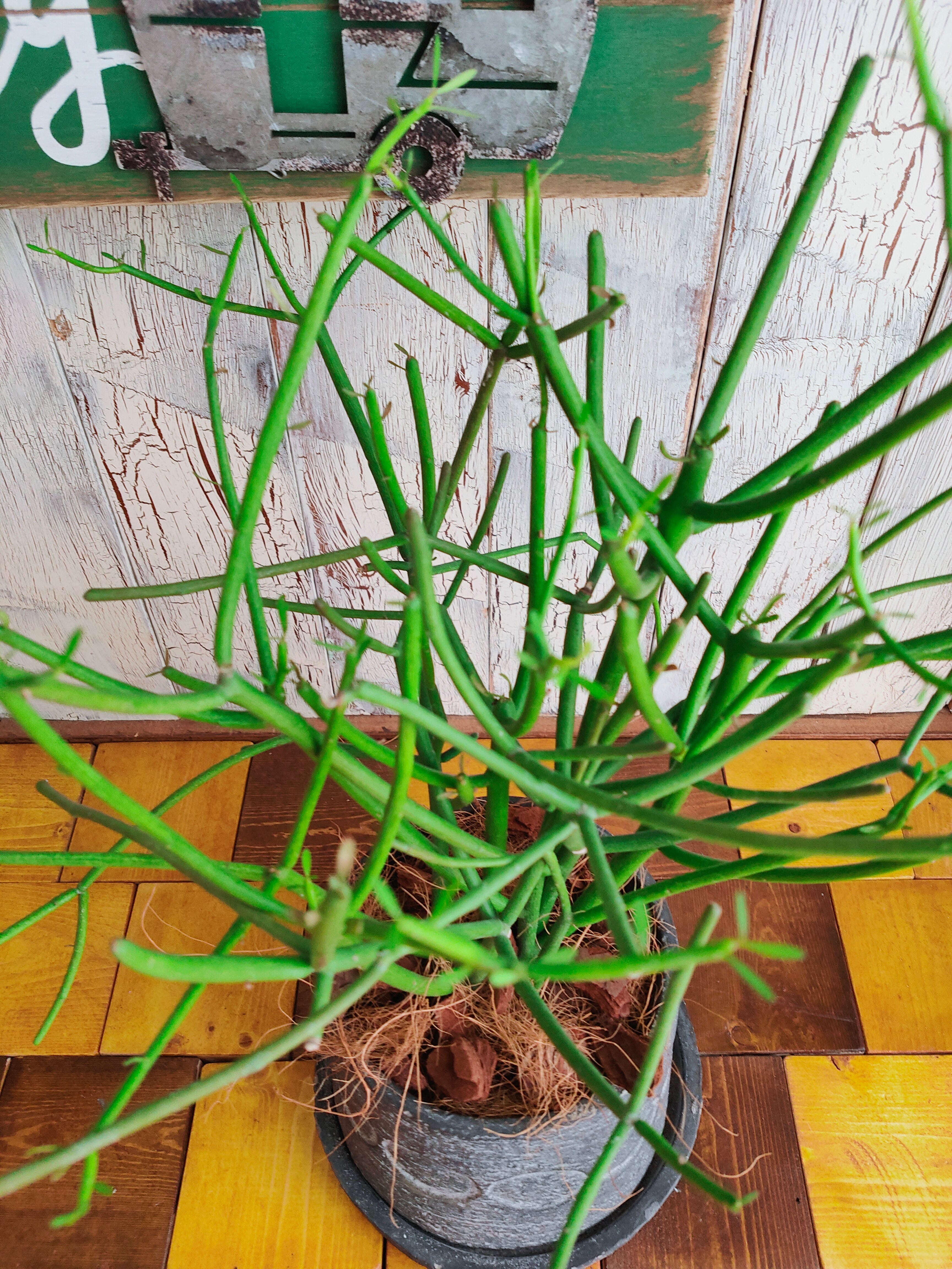 育てる手間のかからない丈夫なミルクブッシュ。サンゴのように生える細長い茎が特徴で、切り口からミルクのような樹液が出ることから、ミルクブッシュと呼ばれています。個性的な植物がお好きな方やワンランク上のお部屋作りをお考えの方にオススメです。