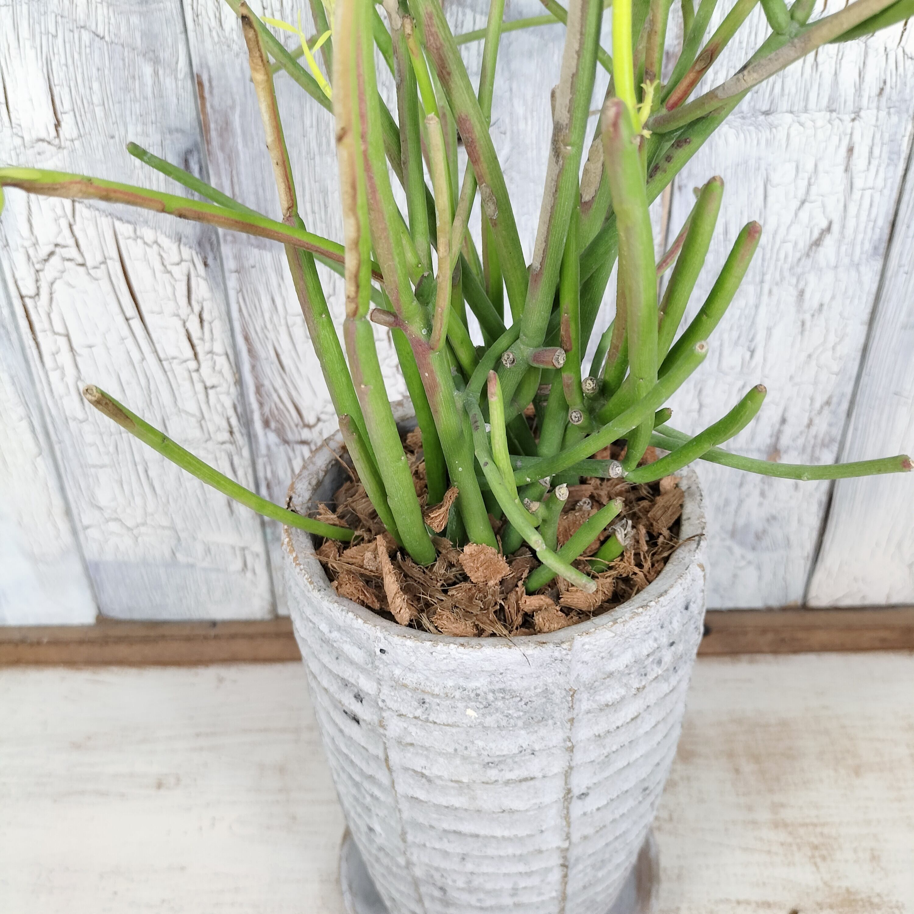 育てる手間のかからない丈夫なミルクブッシュ。サンゴのように生える細長い茎が特徴で、切り口からミルクのような樹液が出ることから、ミルクブッシュと呼ばれています。個性的な植物がお好きな方やワンランク上のお部屋作りをお考えの方にオススメです。