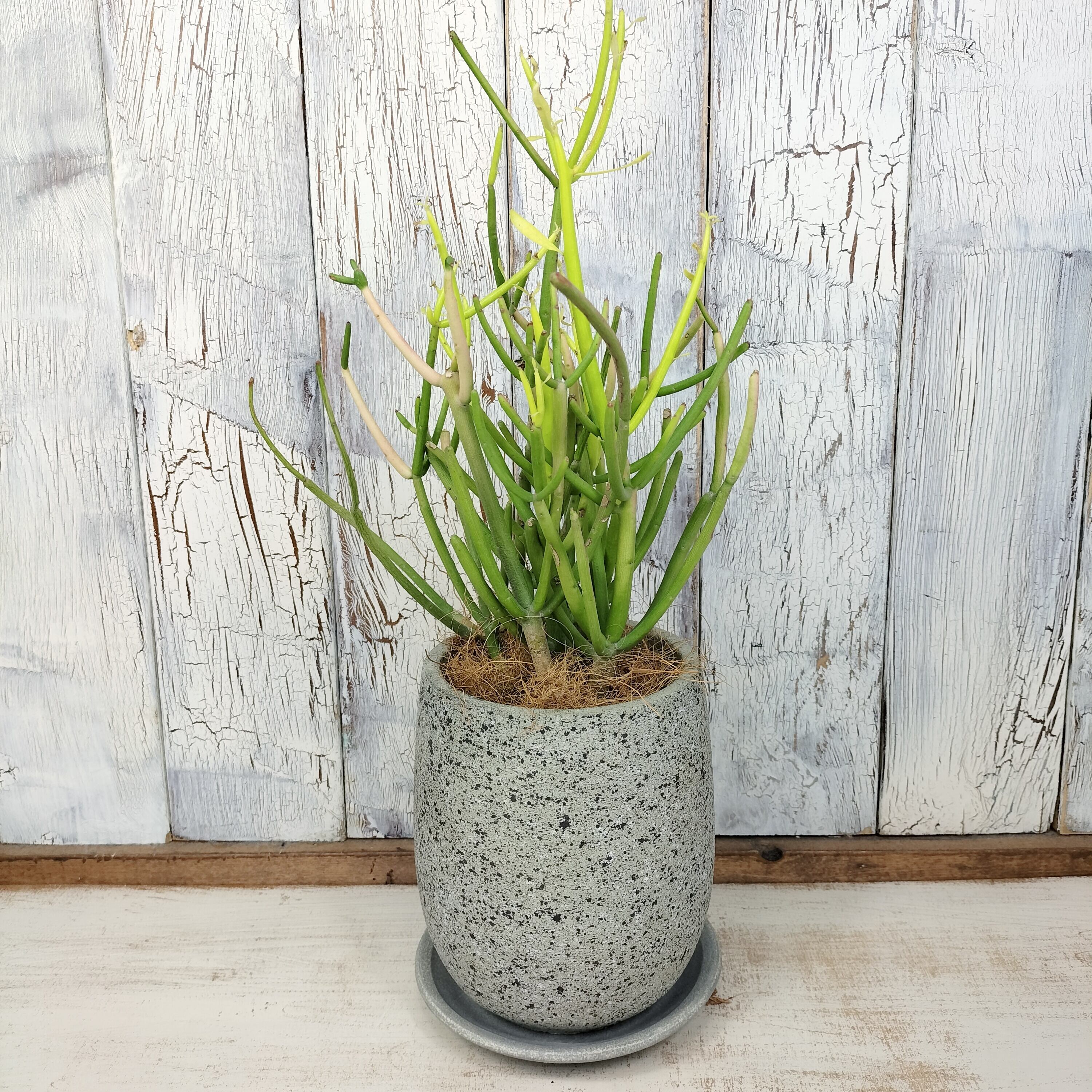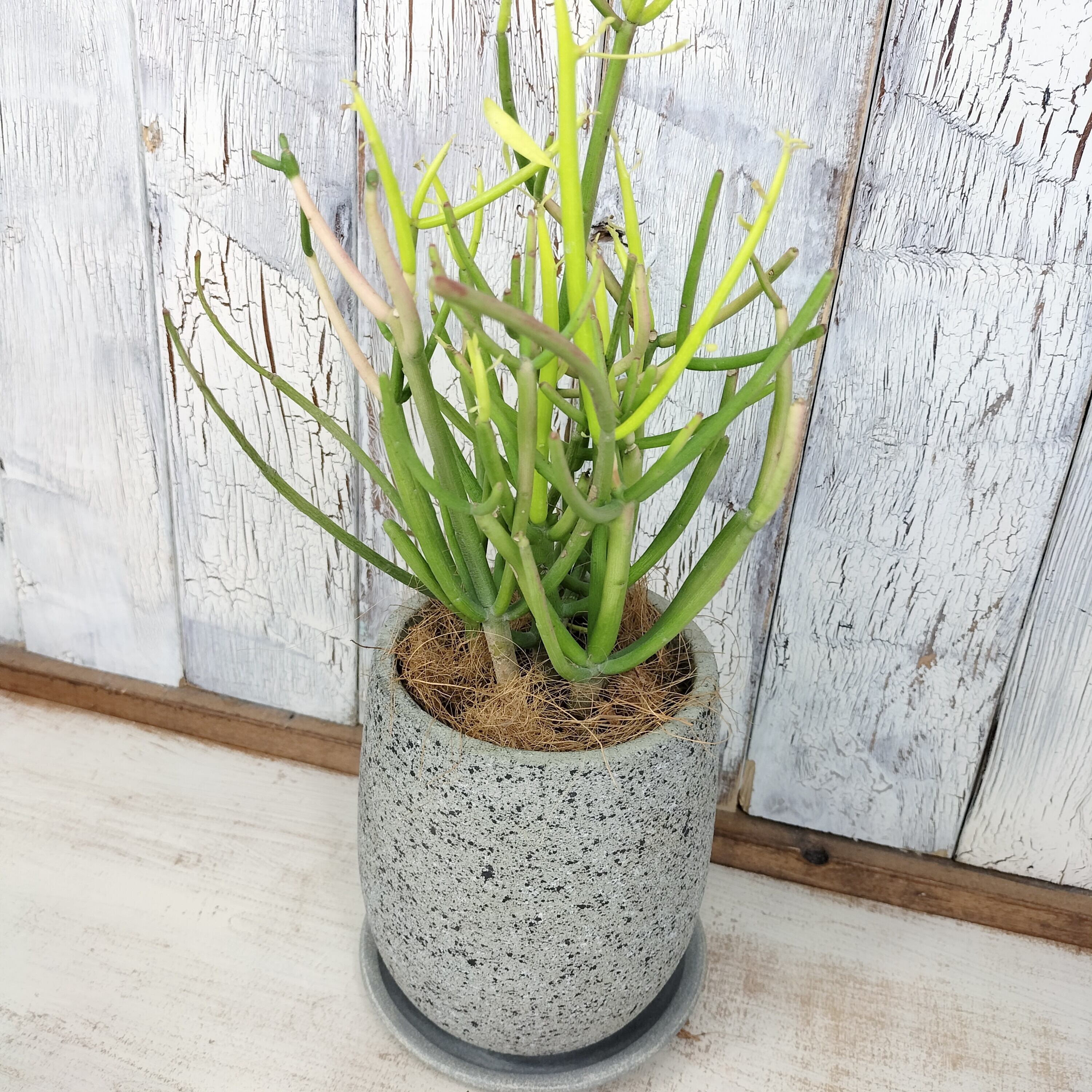 育てる手間のかからない丈夫なミルクブッシュ。サンゴのように生える細長い茎が特徴で、切り口からミルクのような樹液が出ることから、ミルクブッシュと呼ばれています。個性的な植物がお好きな方やワンランク上のお部屋作りをお考えの方にオススメです。